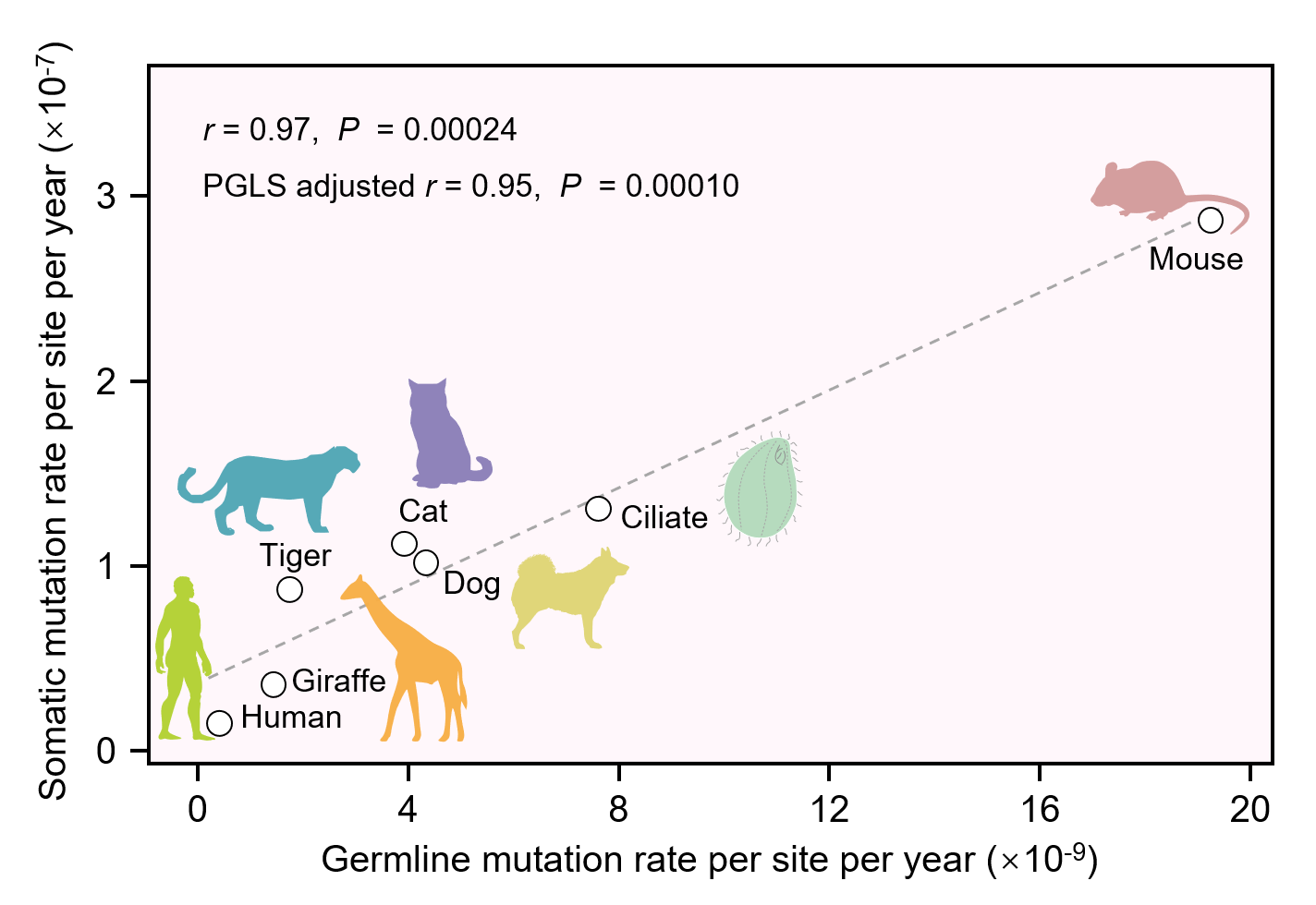 该研究估算了首个单细胞真核生物的体细胞系突变率,挑战了关于生殖系与体细胞系突变率差异成因的主流观点,并揭示二者之间可能存在具有普适性的线性相关关系。