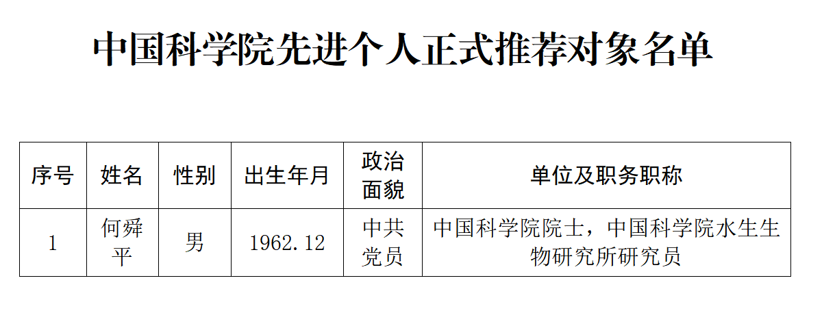 根据《人力资源社会保障部 中国科学院关于开展中国科学院先进集体和先进个人评选表彰的通知》(人社部函〔2025〕44号)要求,现对中国科学院先进个人正式推荐对象进行公示。