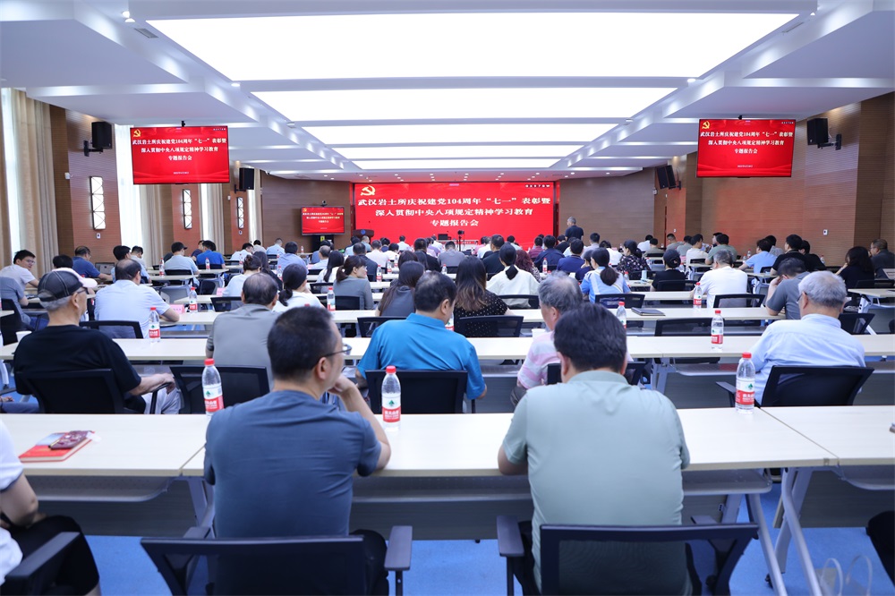 武汉岩土所召开庆祝建党104周年“七一”表彰暨深入贯彻中央八项规定精神学习教育专题报告会