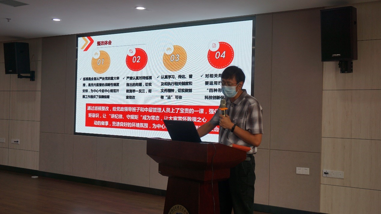 中心主任张智雄代表党政领导班子作巡视整改情况报告。他从总体情况、整改台账问题处理情况、巡视工作体会和效果三个方面进行通报。他逐条介绍了巡视整改问题和处理情况。他表示,本次巡视是的一次全面“体检”,指出了中心存在的问题。中心党政领导班子高度重视巡视整改工作,对巡视发现的问题,不隐藏、不回避,采取坚决有力措施,积极推动巡视整改。通过巡视整改,中心在加强党的领导、深化从严治党、完善治理体系、规范内部管理等方面取得了显著成效,为中心长远发展提供了坚强的政治保障。他对全体员工支持和配合巡视整改工作表示感谢。