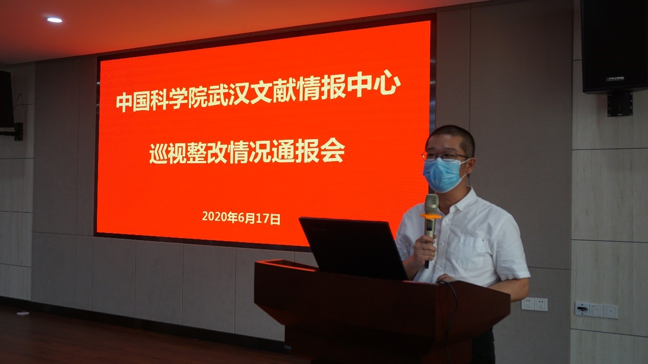 6月17日,根据中科院巡视工作要求,中国科学院武汉文献情报中心召开巡视整改情况通报会并进行满意度测评。武汉分院分党组副书记、纪检组组长蔡长塔到会督导,武汉文献中心领导班子成员、党委委员、纪委委员,各部门负责人,党支部书记,职代会、工会、妇委会、团支部等群团组织负责人以及副高级以上专业技术岗位人员等37人参会。会议由党委书记、副主任陈丹主持。
