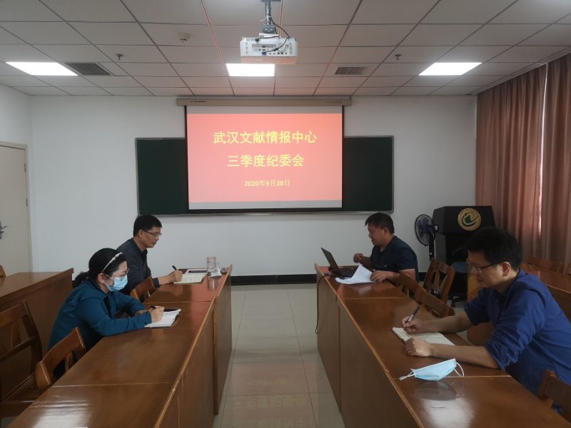 9月28日,中国科学院武汉文献情报中心召开2020年第三季度纪监审工作会,中心纪委委员、纪监审干部参加会议,会议由党委副书记、纪委书记刘德洪主持。