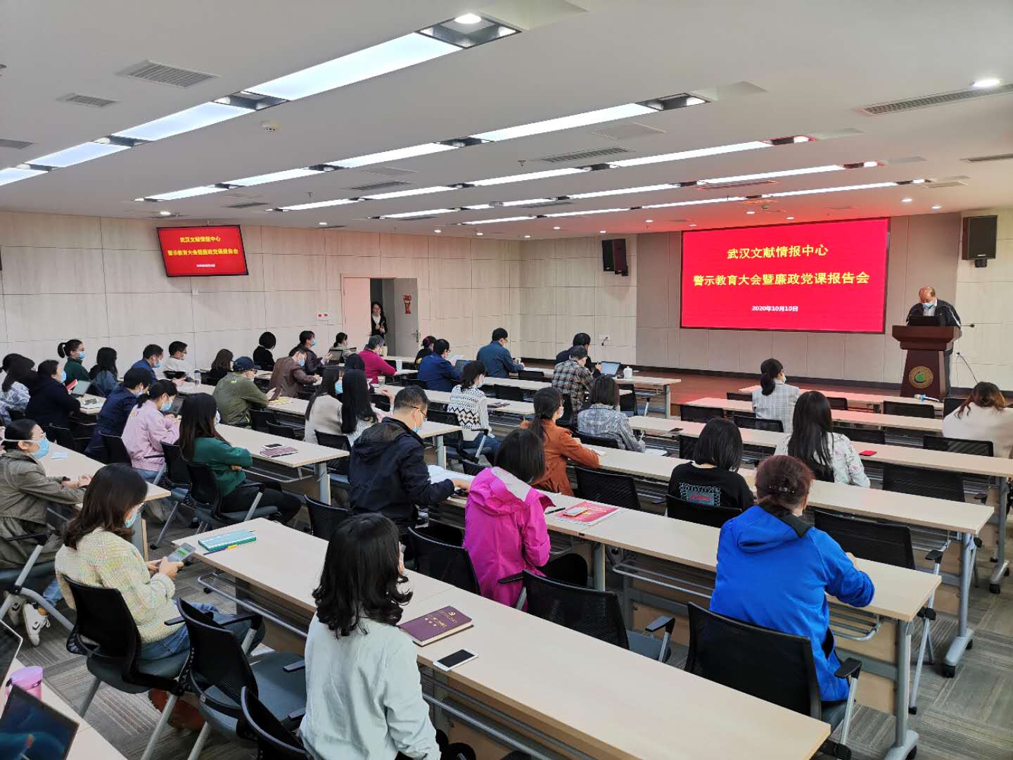 为深入推进党风廉政建设,不断加强党员的政治意识和党性修养,10月10日,中国科学院武汉文献情报中心召开警示教育大会暨廉政党课报告会,中心领导班子成员、党委委员、纪委委员、各部门主任、全体在职党员等70余人参加会议,会议由中心党委书记陈丹主持。