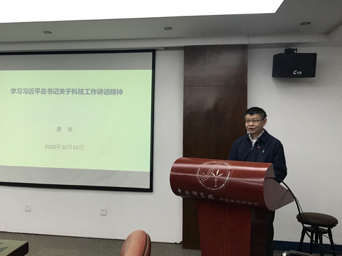 10月15日下午,中国科学院水生生物研究所第五研究中心第一、第二党支部以党课形式,深入学习了习近平总书记关于科研工作的重要讲话精神。水生所所长、所党委委员殷战研究员以普通党员身份参加支部活动,并做了题为“学习习近平总书记关于科技工作讲话精神”的党课报告。所党委委员缪炜研究员(副所长)、肖武汉研究员,两个支部的党员和入党积极分子共60余人参加了本次活动。
