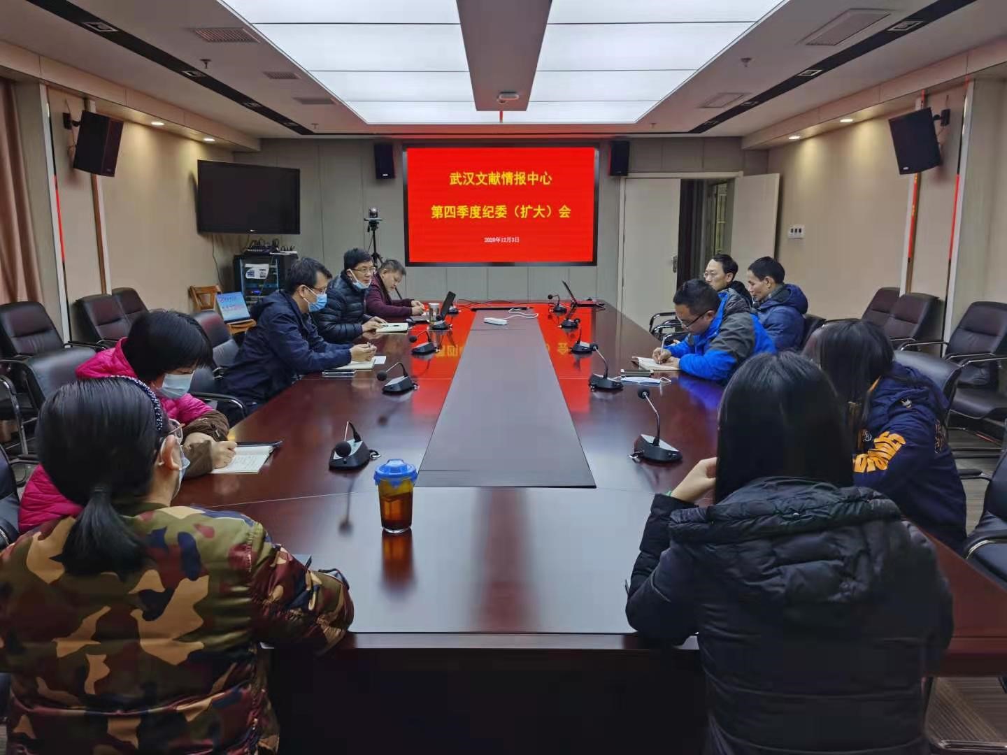 12月3日,中国科学院武汉文献情报中心召开第四季度纪委(扩大)会,学习党的十九届五中全会精神,中心纪委委员、各党支部纪检委员和纪监审干部等参加会议,会议由党委副书记、纪委书记刘德洪主持。