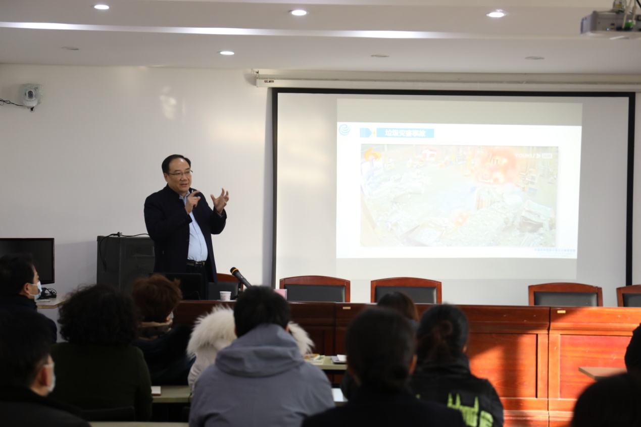 武汉岩土所党委委员、所长薛强同志结合专业研究领域和社区环境治理作“垃圾分类与生态文明”主题党课报告。