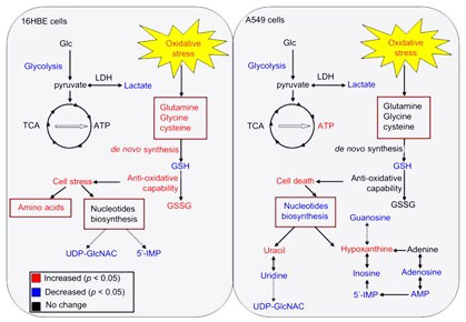 暴露于纳米金棒的A549和16HBE细胞各自代谢应答分子机理