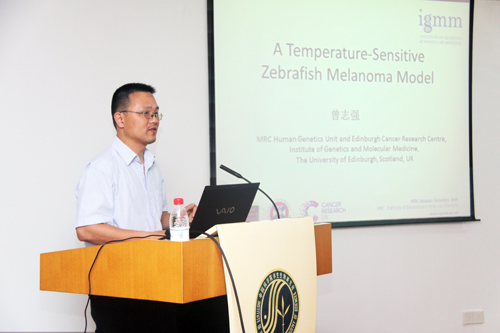 7月12日,英国爱丁堡大学研究员曾志强博士应邀到中国科学院水生生物研究所进行学术交流,并为科研人员和研究生作了题为“A Temperature-Sensitive Zebrafish Melanoma Model”的学术报告。