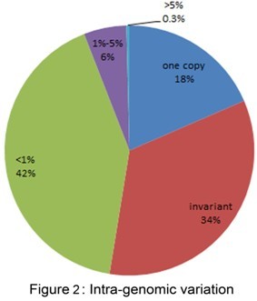自从Carl Woese应用16S rRNA基因来确定原核生物的亲缘关系,这个方法已成为原核生物系统发育和分子生态学研究中公认的经典标准。然而,该基因在原核生物内往往同时存在多个拷贝,而且拷贝之间的基因序列并不完全一致。因此在原核生物生态学研究中,基于16S rRNA基因的菌群多样性分析会引起一定程度的高估。该组从目前2013个测序的原核生物基因组中,对16S rRNA基因的拷贝数及基因组内部异质性做了详细的分析研究,发现细菌基因组中包含1-15个拷贝,古菌基因组中包含1-4个拷贝。在952个基因组(隶属于585个种)内发现16S rRNA基因存在异质性。并发现16S rRNA基因不同区域存在不同程度的异质性,因而利用不同区域的序列进行基于焦磷酸测序的分子生态学研究会造成不同程度的多样性高估。