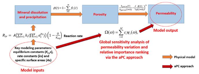 论文题目:Application of arbitrary polynomial chaos (aPC) expansion for global sensitivity analysis of mineral dissolution and precipitation modeling under geologic carbon storage conditions