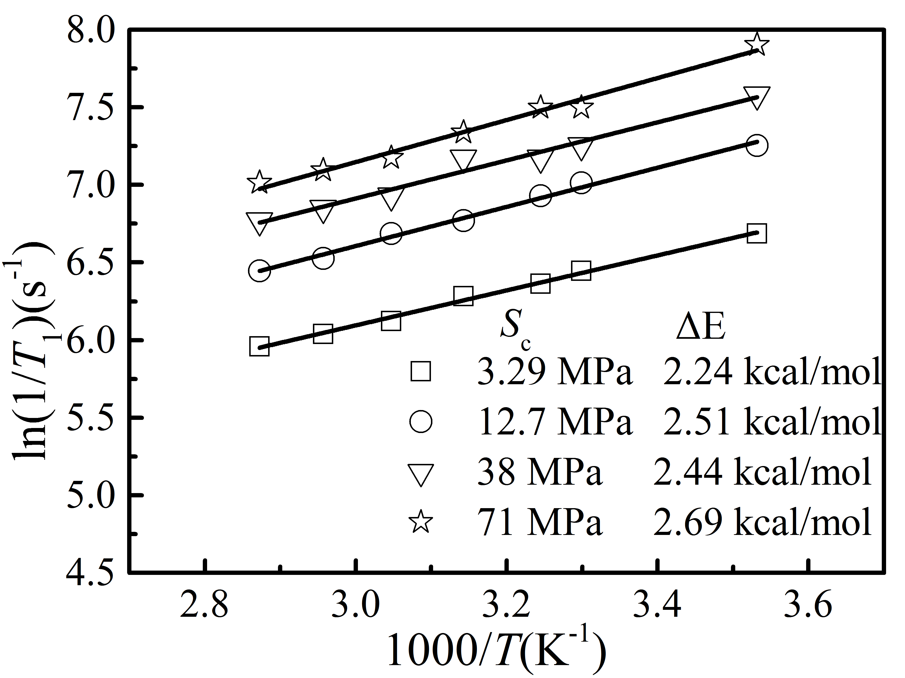 图2 温度对膨润土孔隙水活化能的影响