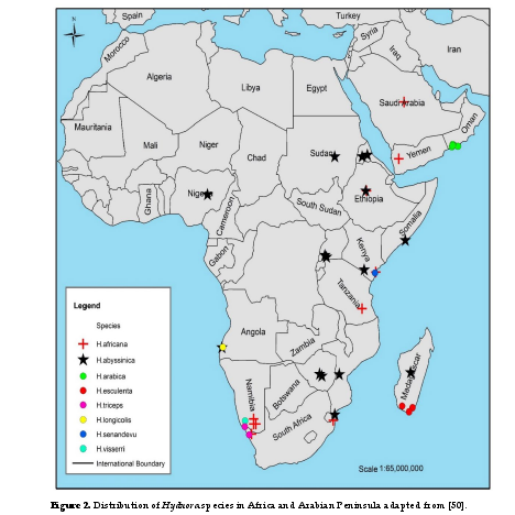 图2 非洲和阿拉伯半岛的Hydnora物种分布