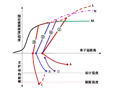图2 基于裂化抑制原理的围岩不同支护时机及其相应的控制效果示意图