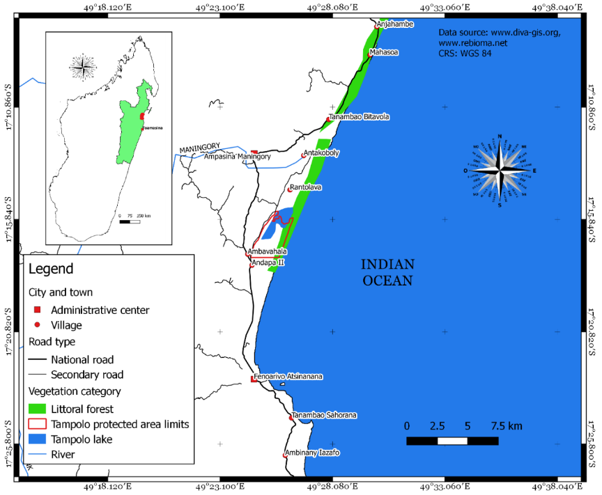 中国科学院武汉植物园东非植物区系和分类学科组,联合热带植物和热带植物资源评估协会(AVERTEM)以及法国里尔大学对Tampolo森林(位于马达加斯加东北部的Fenoarivo Atsinanana)的植物区系及民族植物学进行了调查和研究(图1),以记录被传统利用的森林植物资源,尤其是药用植物,这对当地植物资源保护和可持续利用有着重要意义。
