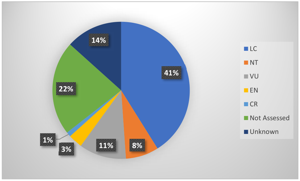 图5:Tampolo森林植物物种的保护等级(基于世界自然保护联盟数据库:VU-易危; NT-近危;CR-极危;EN-濒危)