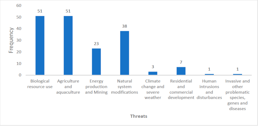 图6:IUCN数据库记录的植物物种生存受到的频率最高的威胁类型