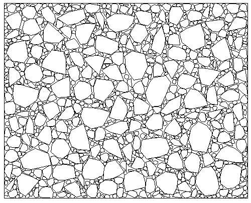 图1. 根据给定块石级配曲线生成的土石混合体随机结构模型(块石体积占土石混合体总体积的80%)