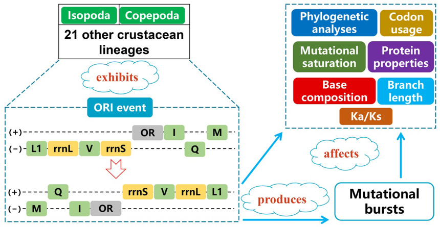 Jakovlic, I., Zou, H., Zhao, X.M., Zhang, J., Wang, G.T., & Zhang, D. # (2021). Evolutionary history of inversions in directional mutational pressures in crustacean mitochondrial genomes: Implications for evolutionary studies. Molecular Phylogenetics & Evolution 107288.