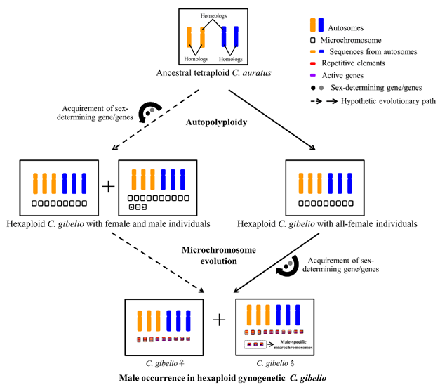 近日,中国科学院水生生物研究所桂建芳院士团队在PLoS Genetics在线发表了题为“Genomic anatomy of male-specific microchromosomes in a gynogenetic fish”的论文。