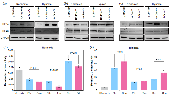 图2. 高原鱼类VHL基因在表达水平的趋同进化