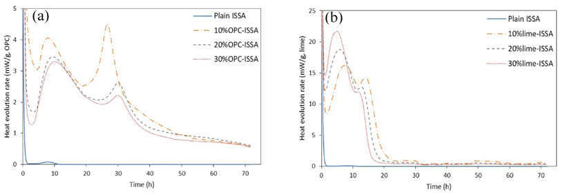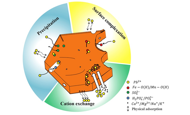 针对上述难题,武汉岩土所环境土力学与工程学科方向组科研人员采用具有强吸附性和化学活性的污泥焚烧飞灰(以下简称“污泥灰”)对高含水率疏浚底泥进行固化/稳定化处理。科研人员发现污泥灰呈多孔结构,富含大量的Si, Ca, Fe和P等活性氧化物,污染物浸出浓度低,是一种潜在的资源(图1);污泥灰对重金属污染物有良好的吸附作用,主要机理包括离子交换、化学沉淀和表面络合等(图2);通过碱活性激发,污泥灰可促进水化反应速度(图3),生成水化硅酸钙、钙磷石等水化产物,导致其强度提升(图4);污泥灰固化剂用于处理高含水率污染底泥,具有强度高、浸出毒性小等特点,同时对污染物和海水有较强的化学兼容性(图5)。本成果可为污染底泥提供一种可持续固化材料和技术,形成“以废治废”的绿色发展模式,对我国污染底泥安全处理和资源化利用具有重要的科学意义和实用价值。