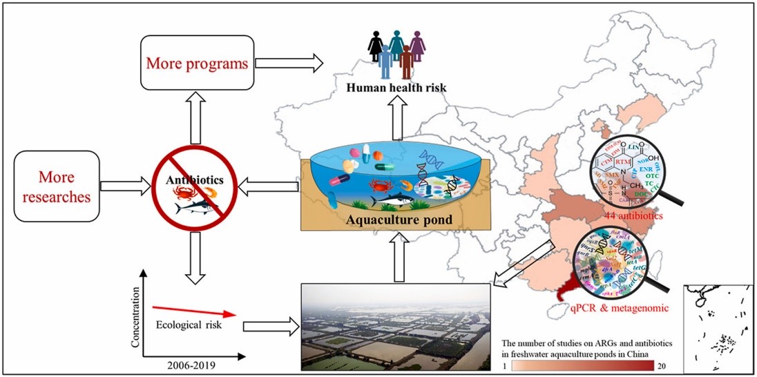 中科院精密测量院环境与灾害研究部王智研究员和合作团队,通过抗生素和ARGs的大数据分析,发现我国抗生素限用政策一定程度上减少了水产养殖中目标抗生素的赋存量和生态风险;证实了稻虾共作养殖模式是一种相对生态友好及可持续发展的养殖模式。上述研究成果近期分别在生态环境领域专业期刊J Clean Prod.和Environ Poll.上发表。