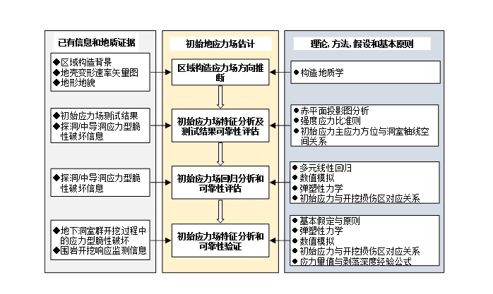 图1 深切河谷区大型深埋地下洞室群初始地应力场综合估计方法工作流程