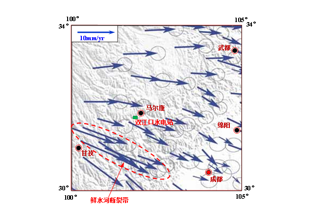 为此,在国家自然科学重点基金和面上基金支持下,中国科学院武汉岩土力学研究所智能岩石力学组科研人员基于双江口水电站有限的初始地应力测试结果和洞室群分层开挖前探洞/中导洞内的应力型脆性破坏现象,提出了一种用于估计深切河谷区大型深埋地下洞室群3D初始地应力场的综合估计方法(图1)。这一方法通过区域构造应力场方向推断(图2)、基于测试结果的初始地应力特征分析和可靠性评价、基于回归的初始地应力场特征分析和可靠性评估以及修正的初始地应力场分析和可靠性验证等四个相互关联、循序渐进的基本步骤来实现深切河谷区大型深埋地下洞室群三维初始地应力场方位和量值的准确估计。