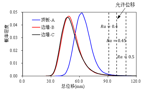 图3 相关向量机模型预测隧洞位移概率密度函数