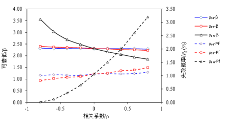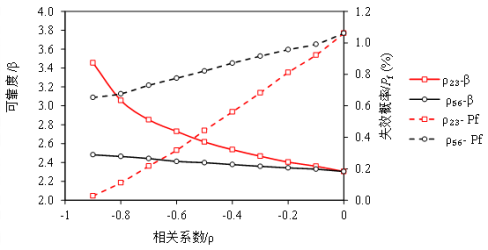 图4 (1)强度参数相关性对可靠度的影响(2)峰值与残余参数相关性对可靠度的影响