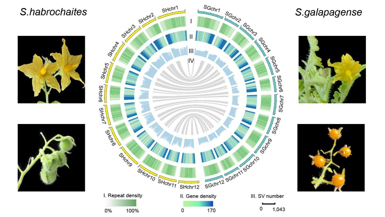 近日,Horticulture Research 在线发表了中国科学院武汉植物园和康奈尔大学、浙江大学合作完成的题为“Chromosome-scale genome assemblies of wild tomato relatives Solanum habrochaites and S. galapagense reveal structural variants associated with stress tolerance and terpene biosynthesis”的研究成果。该研究完成了多毛番茄、加拉帕戈斯番茄的全基因组测序和分析,为番茄重要性状改良提供了新的理论依据和基因资源。