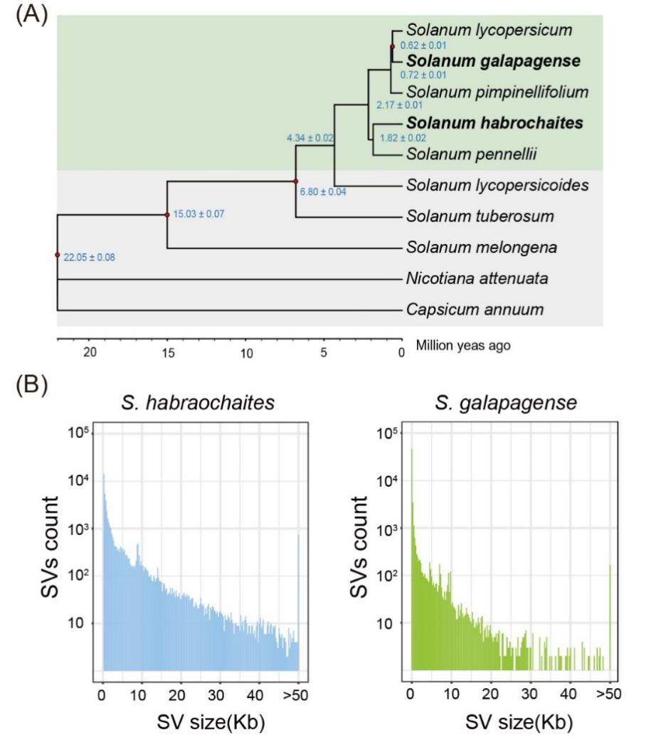 图2 多毛番茄、加拉帕戈斯番茄系统进化与结构变异