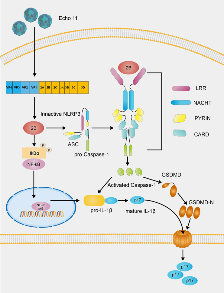 图1. ECHO11非结构蛋白2B诱发NLRP3炎性小体依赖的细胞焦亡