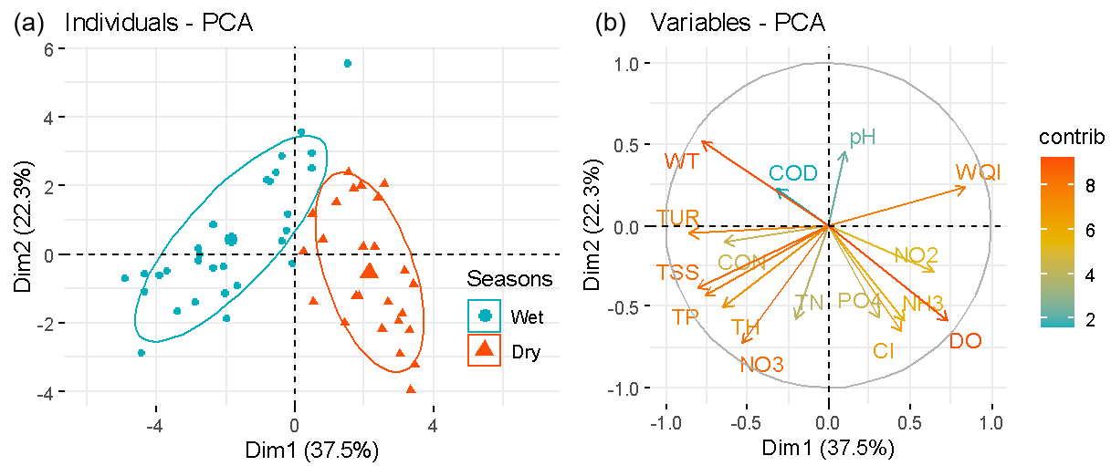 图6 2017-2018年长江中下游干流(a)丰水期和(b)枯水期各环境因子对水质空间格局影响的解释率
