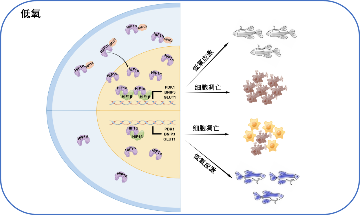 该研究工作,不仅揭示了SMYD3在机体低氧耐受中的生物学功能和作用机制,而且为耐低氧鱼类新品种的培育提供了潜在的分子靶标。