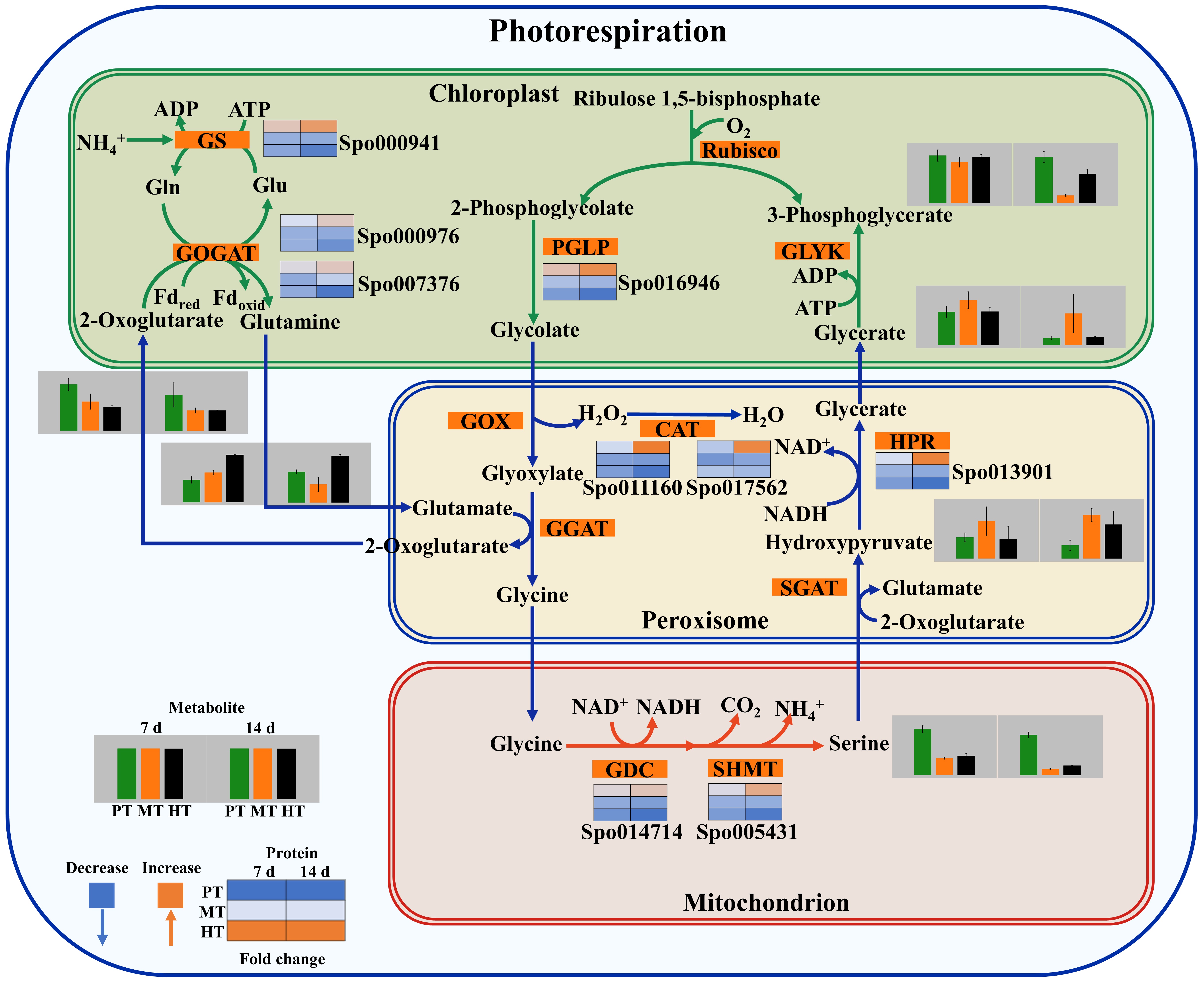 近日,该团队以紫萍(Spirodela polyrhiza 7498)为实验材料,结合表型组、蛋白质组和代谢组等技术手段解析了其在不同营养条件下的代谢特性,揭示了混合营养的代谢调控机制(Sun et al.,2023)。