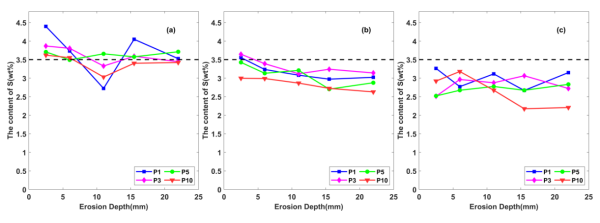 图3 不同盐浓度与腐蚀龄期下材料体系中硫元素含量的变化过程