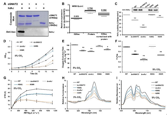 图4. cGNAT2调控NdhJ蛋白的乙酰化修饰进而影响光合作用过程