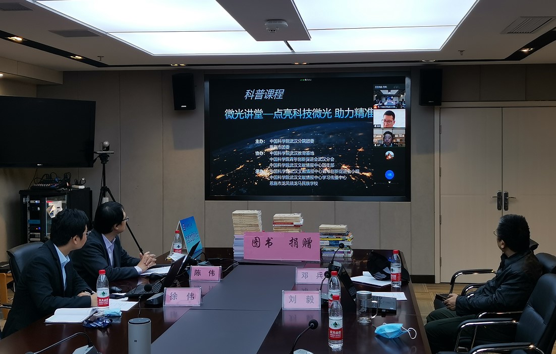 武汉文献情报中心青促会小组和学习传播中心负责具体承办此次活动,协助组织策划了课程实施方案,联系对接武汉分院对口帮扶地区恩施市龙凤镇的龙马民族学校作为课堂授课地点,并特邀精密测量创新研究院正高级工程师祁峰和中国疾病预防控制中心副研究员刘欢为同学们做了《卫星导航与原子钟》、《剑与盾之歌——人类对抗病毒的精彩瞬间》两场精彩的专题科普报告。讲座中,两位老师还与同学们连线交流,解答同学们的提问,并勉励同学们刻苦学习,努力为祖国做出贡献。最后,武汉教育基地、刘欢向学校捐赠了科普读物。