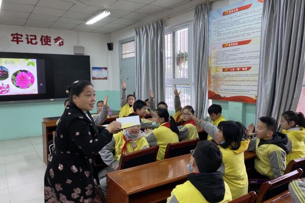 “为什么植物大多在春天发芽?”李俊皞用这个充满启发的设问开启了一场别开生面的春天之旅,通过讲解开花与发芽的时间差,让同学们了解到温度在植物生长中的重要作用,并从花的结构、花的授粉方式、常见花的区别、土培与水培等方面一一为同学们作出讲解。在她的引导下,同学们仔细思考并积极参与互动问答,她也为表现精彩的孩子们送上了中科院院徽、科普书籍、以及精美的叶脉书签,鼓励大家热爱学习、热爱自然。活动最后,她带领在场同学齐声诵读习近平总书记给孩子们的寄语——“大自然充满乐趣,无比美丽,热爱自然是一种好习惯,保护环境是每个人的责任,少年儿童要在这方面发挥小主人作用”。课后,李俊皞参观了校内的微生态研究站台,十里铺小学科技辅导员彭燕老师表示,本次讲座对学生们在养护植物和开展生态环境学习方面大有裨益,也给老师们带来很多启发,希望将来有更多专家学者来校指导交流,共同推进环境教育融合式创新发展。