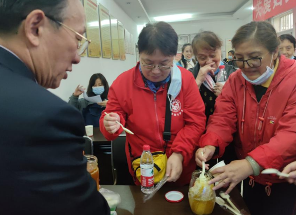 最后,社区居民代表们现场品尝了张新军老师带来的巢蜜,领取了武汉科学普及研究会赠送的养生保健类科普图书,活动在大家的欢声笑语和相互祝福中结束。
