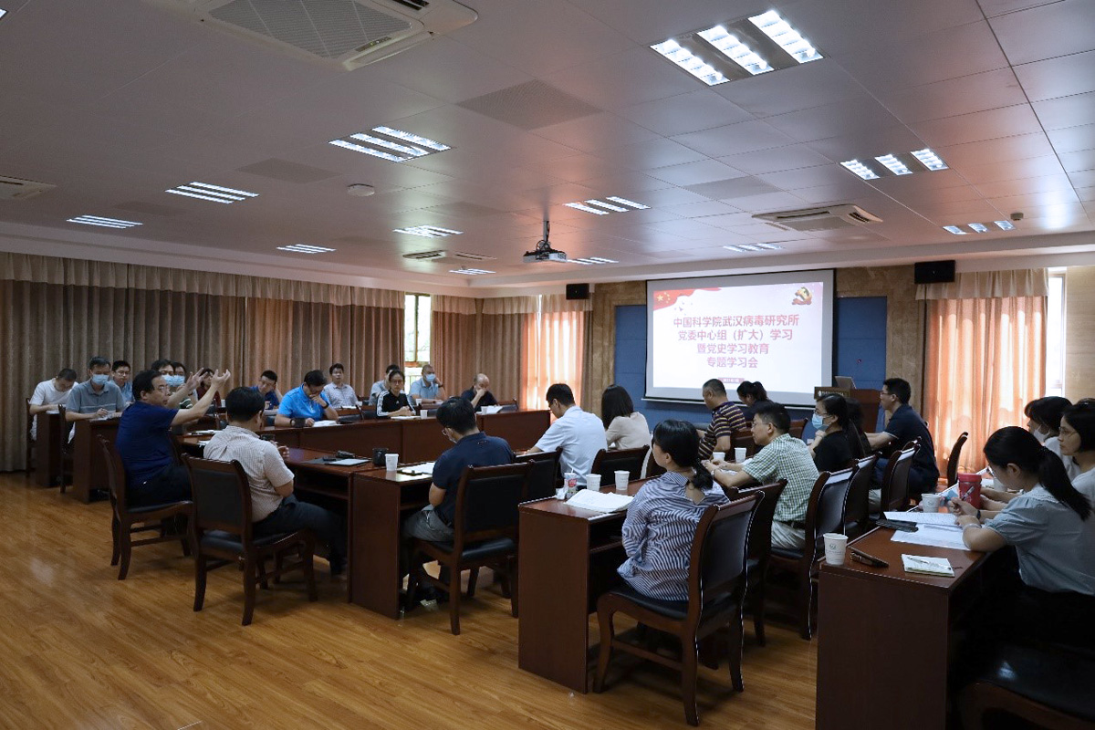 9月9日,中国科学院武汉病毒研究所召开党委中心组(扩大)学习暨党史学习教育专题学习会。武汉病毒所党委委员、所务委员、纪委委员、中层管理人员、在职各党支部委员、研究生各党支部书记参加学习。会议由党委书记、副所长肖庚富主持。