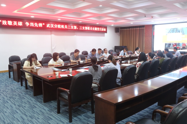5月24日,武汉分院机关二支部与三支部联合组织主题党日活动。围绕致敬英雄、争当先锋,树立安全生产观以及清廉机关建设等三个主题开展学习和讨论。