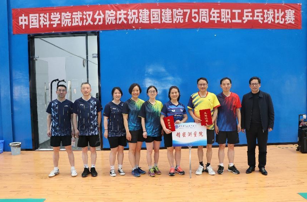 3月29日,中国科学院武汉分院庆祝建国建院75周年职工乒乓球比赛在武汉病毒研究所郑店园区职工活动中心举行。经过激烈的角逐,精密测量院职工乒乓球代表队在强手如云的比赛中一举夺得团体冠军。王谨获得男子组单打季军,周小丽获得女子组单打季军。