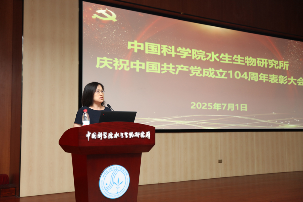 7月1日下午,中国科学院水生生物研究所举办庆祝中国共产党成立104周年表彰大会。所领导、党委委员、纪委委员,各党支部书记、支委,职能部门负责人、广大党员、青年理论学习小组成员、入党积极分子等近320人参加会议。会议由党委副书记、纪委书记梁琼主持。