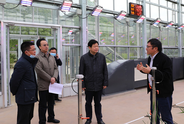 陈新武一行实地调研了神农设施预研设施的情况。张全发从神农设施的建设目标、建设方案、预期成效、问题与建议等方面做了汇报,并重点介绍了目前智能可控环境平台建设工作推进情况及已取得的重要研究进展。