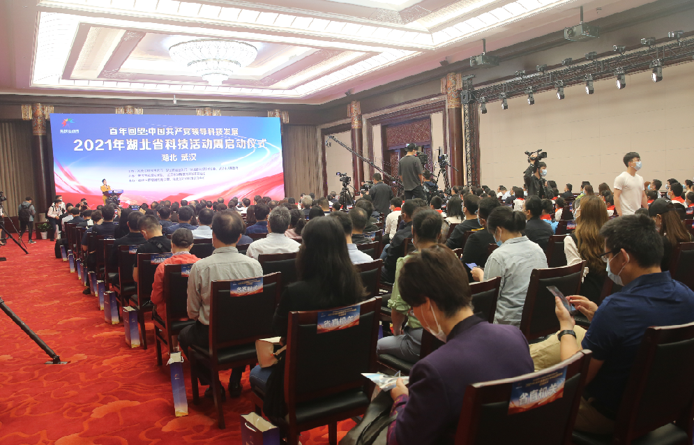 5月22日上午,由湖北省科学技术厅、中共湖北省委宣传部、湖北省科学技术协会和武汉市人民政府联合主办的2021年湖北省科技活动周启动仪式在武汉市东湖高新区中国建筑科技馆举行。本次科技周以“百年回望,中国共产党领导科技发展”为主题,湖北省副省长肖菊华、湖北省政府副秘书长卢军、省科技厅厅长王炜和中科院武汉分院院长袁志明等领导出席启动式。武汉分院组织50余名科技工作者和科普志愿者来到现场开展活动。