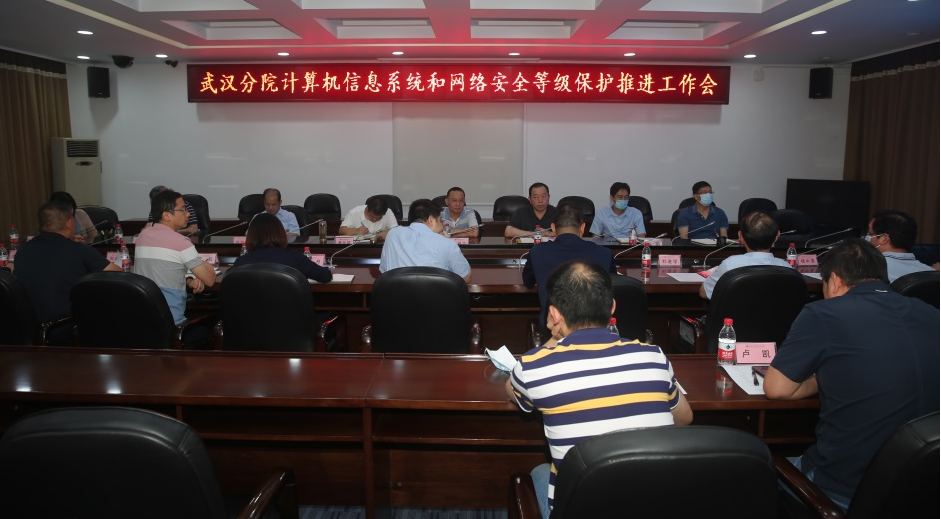 会议详细介绍了等级保护工作背景、相关法律法规和工作流程,以及武汉分院近期多次组织开展的等级保护推进工作情况。各单位分别就本单位的网络安全工作状况和等保推进工作情况做了交流和讨论。