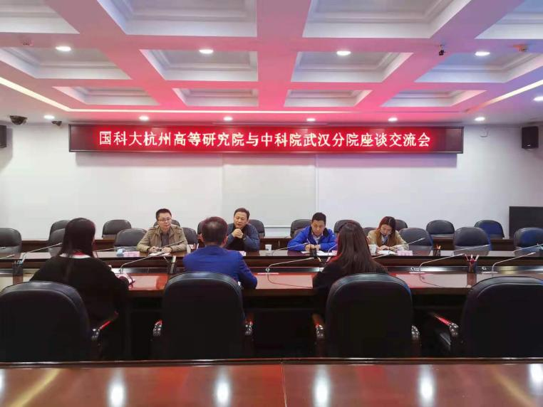 武汉分院院长、武汉教育基地管委会主任袁志明对马里松一行表示热烈欢迎,期待双方今后加强合作和交流,共同探索具有中科院特色的研究生思想政治工作新模式。马里松表示,国科大杭高院作为国科大直属的区域学院,是中科院科教战线的“新兵”,面临许多困难和挑战,真诚希望加强与中科院、国科大相关单位的交流合作,携手共同进步。