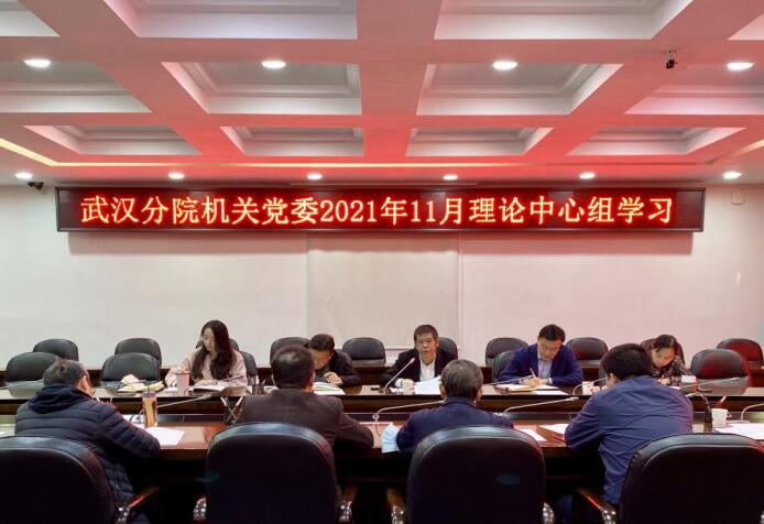 11月12日上午,武汉分院机关党委组织召开理论中心组学习研讨会。武汉分院分党组成员、纪检组组长,机关党委书记蔡长塔,机关党委副书记、委员,各党支部书记,机关党办人员参加会议。会议由机关党委副书记洪成浩主持。